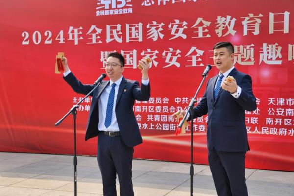 启动仪式上,市、区有关部门向南开区国家安全宣讲团代表颁发聘书,宣讲团成员代表宣读了维护国家安全倡议书,演出了快板节目《国家安全重任担》。启动仪式结束后,同步举办了国家安全主题趣味运动会和集中宣传教育活动。
