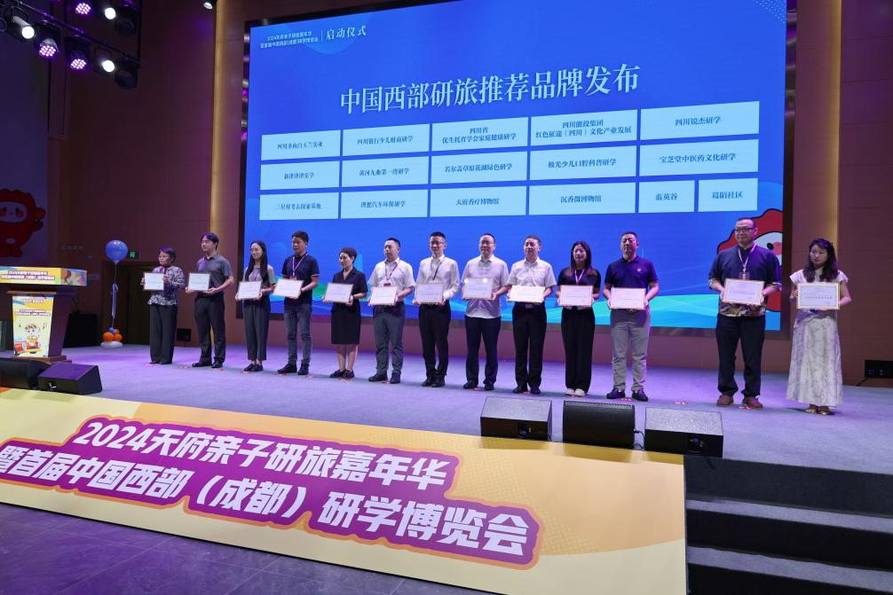 启动仪式上,32家研旅基地、机构、路线成为2024中国西部研旅推荐品牌。省研学旅游产业促进会、省教育学会研学实践专委会、省红色文化旅游产业发展促进会等12家致力于研学旅游领域研究和发展的社会组织和机构代表共同发布了《首届中国西部(成都)研学博览会倡议书》。